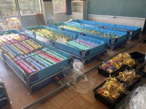 青い水槽の中に水耕栽培中の高麗人参が、そして右下の黒い箱には、収穫された高麗人参がございます!!